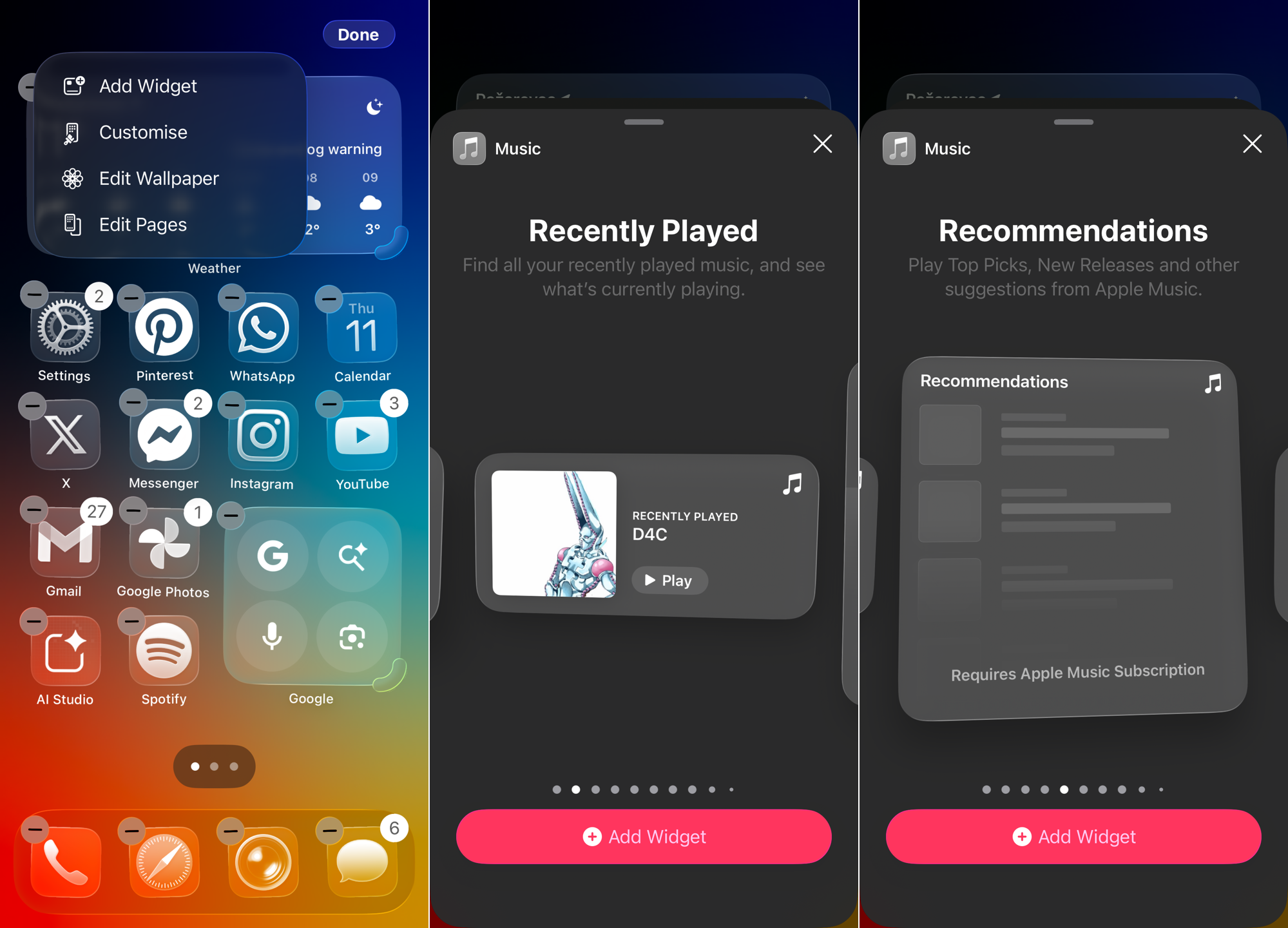 Once added, the medium and large widgets let you play and pause music directly. Tapping on any album or playlist shown in the widget will immediately open the Music app and start playing your selection, making it a really useful shortcut.
